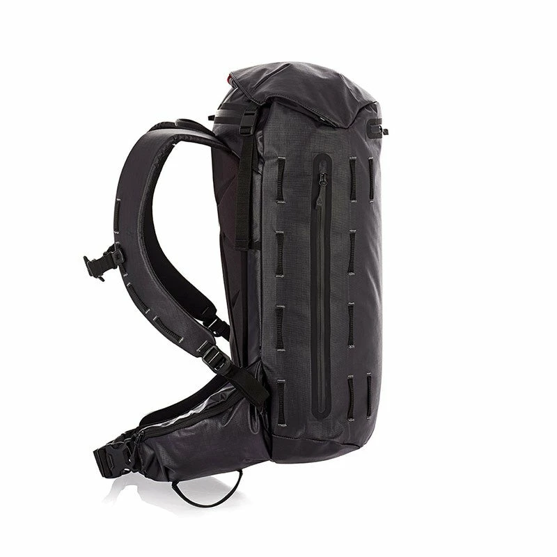 By reducing the number of seams and making this pack with a tough N400D PU2 waterproof ripstop fabric, a minimalist design has never proved to be such a versatile high-performer. Just as comfortable on a sidecountry or backcountry freeride tour, this pack also performs well on more mountaineering-oriented endeavors. The multi-purpose strap system will prove more than capable of carrying all of your gear, whatever the situation. The YKK AquaGuard® zipper is placed on the side of the pack for quick access. Stow your shovel and probe in a separate, closed compartment, to forget they are there most of the time, and for split-second access in an emergency situation. In terms of style, you can choose between a very elegant shade of blue or black for a more understated, refined look. Whatever your preference, the ST30 has character and will leave a lasting impression.