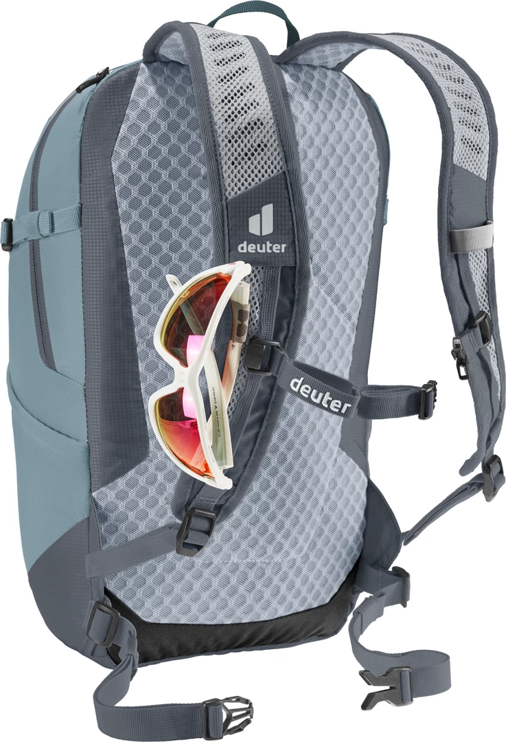 This pack is speedy, light and sustainable thanks to deuter’s Lite back system, ergonomic, perforated shoulder straps, a detachable waist belt, precision-adjustable sternum strap and 100% recycled, bluesign® certified body fabric. Designed for fast-paced hiking, side compression straps effectively reduce load wobble and enable full range of movement. This helps save energy over longer distances too.