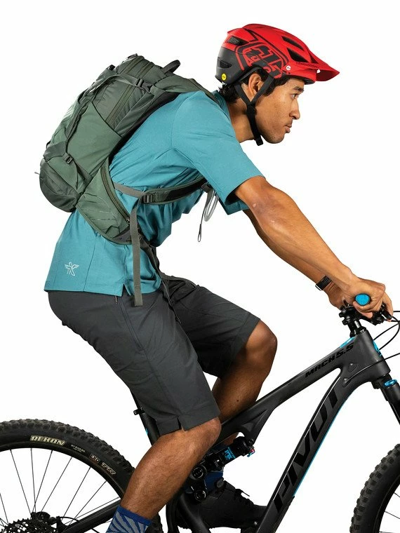 Made to haul all the gear you need—but flexible enough to slim down for shorter rides—the Raptor 14 is the premium pack for mountain bikers who demand top quality from their gear. Don’t like how hydration packs feel over gnarly terrain? Osprey designed shoulder straps in the shape of wings that curve the same way you do when you’re in riding position. An AirScape suspension and backpanel provide a close-to-body carrying experience and elevate comfort and stability to unprecedented levels, while still allowing for dynamic body movement. An included 2.5-liter reservoir with direct-zip hose access ensures straightforward loading, while a tool roll organizes the ingredients to get you moving again should you have any trailside troubles. Standard helmets attach with our LidLock system and side compression straps will fit your full race helmet.