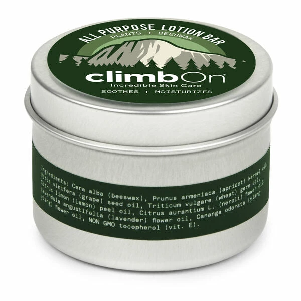 ClimbOn Lotion Bar was originally formulated for rock climbers skin, being used to help the body repair from extreme use and environmental conditions. It’s a super hero of a skin care lotion.
