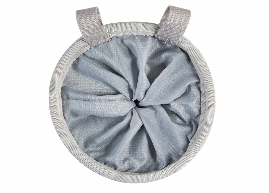 The BANDI chalk bag has a round shape with a large opening to accommodate the entire hand. The soft fabric wonโt cause discomfort when wearing a pack or when your back is against a rock wall. Practical closure system with drawstring and cordlock. It can be opened with only one hand should you forget to open it before you start climbing.