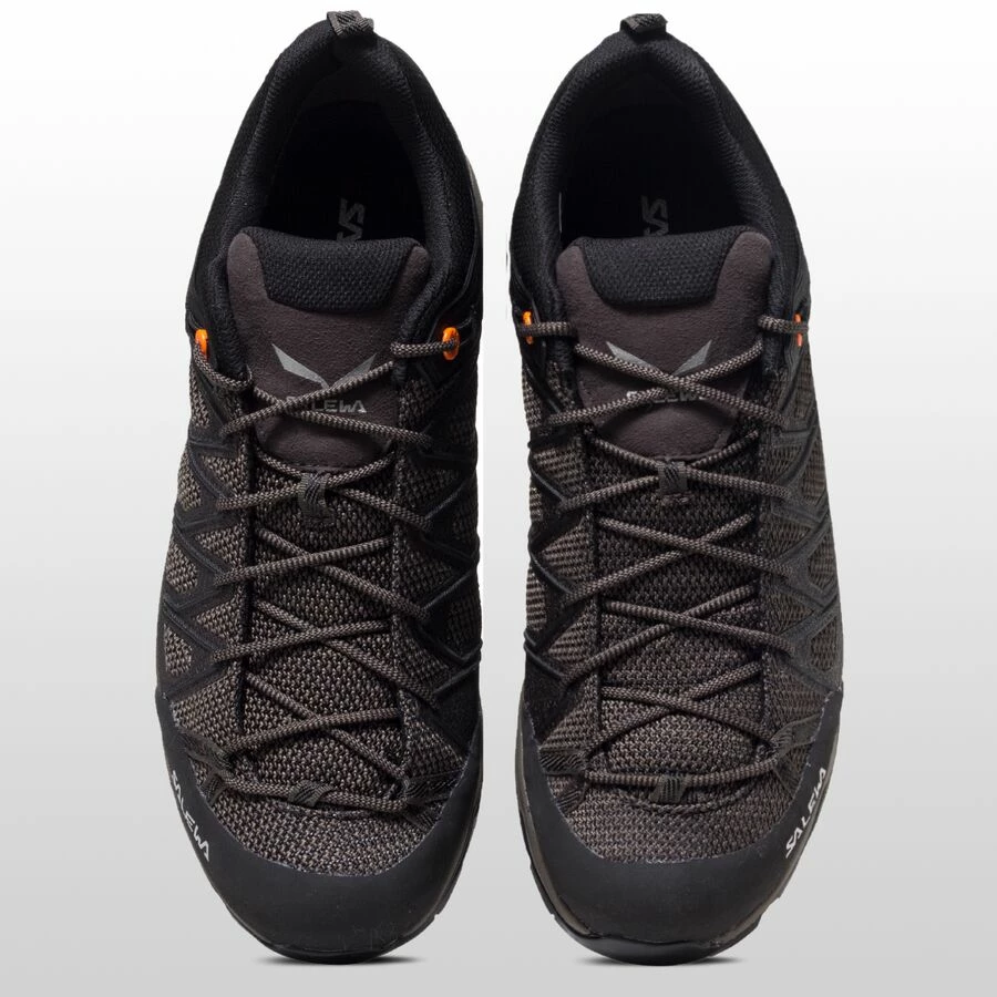 Designed for alpine approach and mountain use, welcome to the lightweight version of our classic MTN Trainer. It has a robust fabric upper to ensure good wear resistance, while the waterproof, breathable GORE-TEX® Extended Comfort lining will keep you dry and comfortable, whatever adventure you’re planning. The unique construction is made over a special last designed to ensure a good fit and the optimal combination of flex and support. This shoe is also engineered with Salewa’s proprietary 3F system that connects the instep, sole and heel. Inside the shoe is a shock-absorbing EVA midsole for long-lasting rebound and there is a flexible ankle cuff and rubber toe cap for additional protection. Underfoot, the durable outsole guarantees reliable grip thanks to the Pomoca compound rubber and tread pattern with deep lugs and grooves. It has the versatility to cope with a wide range of terrain from mud and grass to rock, ice and snow. The climbing lacing allows you to fine-tune right down to the toe for greater precision in technical rocky terrain. Designed in Italy, according to traditional shoemaking expertise, the men’s MTN Trainer Lite is a lighter, 3-season solution for hiking, and faster-paced treks that makes no compromises on water resistance.