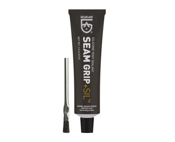 Seam sealing with Seam Grip SIL is the best way to keep moisture out when using a silnylon (silicone-nylon) tent. Previously known as SilNet, this clear sealant dries to a flexible rubber that works on all silicone treated gear including nylon tarps and ultralight backpacks. A single 1.5 oz tube can seal up to 24 ft of seams. Fast and easy to use, itโs also handy for pinhole repairs and small tears. When you need to waterproof a silnylon tent only a silicone sealant will work, because silicone will only adhere to silicone. So, treat gear right and seal out the weather with Seam Grip SIL.
