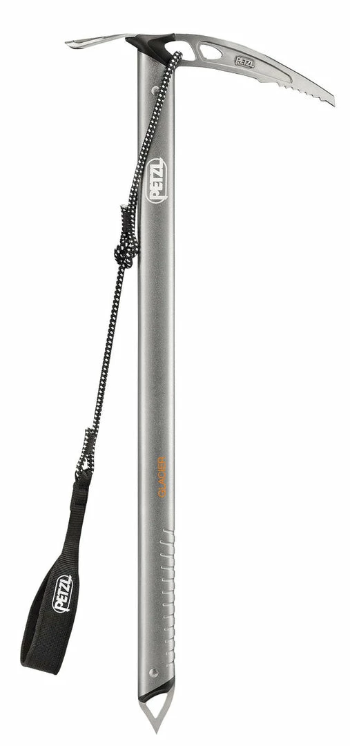 Lightweight performance ice axe for glacier travel, with a meticulous design and finish. The Glacier ice axe offers very good anchoring qualities in hard snow and ice, thanks to its very high-quality steel pick, guaranteeing both solid bite and durability. It also has an anodized aluminum shaft with a machined handle for excellent grip.