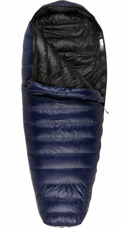 The latest addition to the Extremelite Series is a wide sleeping bag made for side sleeping comfort, the Terralite. It features 12 denier ripstop nylon shell fabric with a 15 denier nylon taffeta lining material. There are two zippers allowing this bag to mate with our mummy bags and the second zipper opens the bag up completely around the foot. With both zippers open this bag can make a fairly wide “camper van” comforter, but even when zipped up it is extremely comfortable. This is due to its wide girth through the middle of the bag, a design that side sleepers will find ideal. Despite the comfortable shape, this bag weighs less than two pounds.