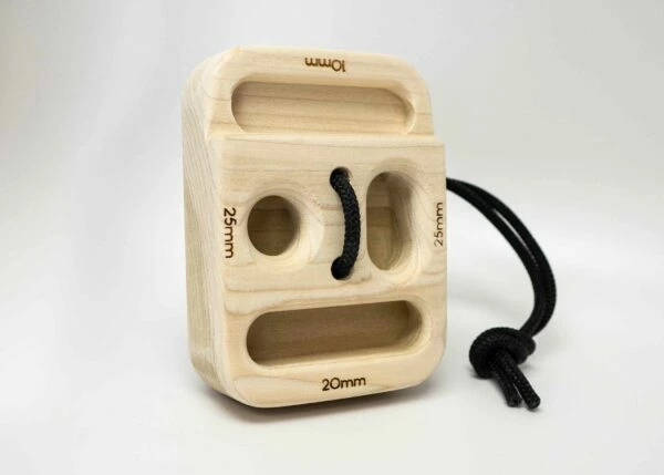 The Block might be the single most useful block of wood ever made. Simply put, it’s a block of wood with an assortment of edges, pinches, pockets, and little crimps. Once you start using it you’ll realize that there is a lot more than meets the eye. Use them individually or in pairs to pick weight up off the floor, hang them from the ceiling, attach to a cable machine, pull against your own foot, combine with resistance bands… the possibilities are endless… Oh yeah, all the grips are immediately adjustable to be sloped, flat, or incut!