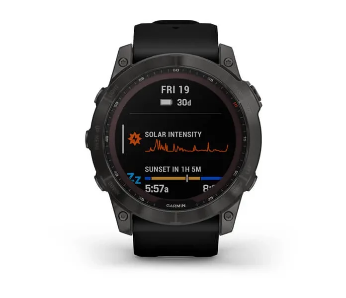 Meet any athletic or outdoor challenge with the rugged fēnix 7X Sapphire Solar multisport GPS watch. Its scratch-resistant Power Sapphire™ solar charging lens uses the sun’s energy to extend battery life — powering advanced training features, sports apps, health and wellness monitoring sensors and more.