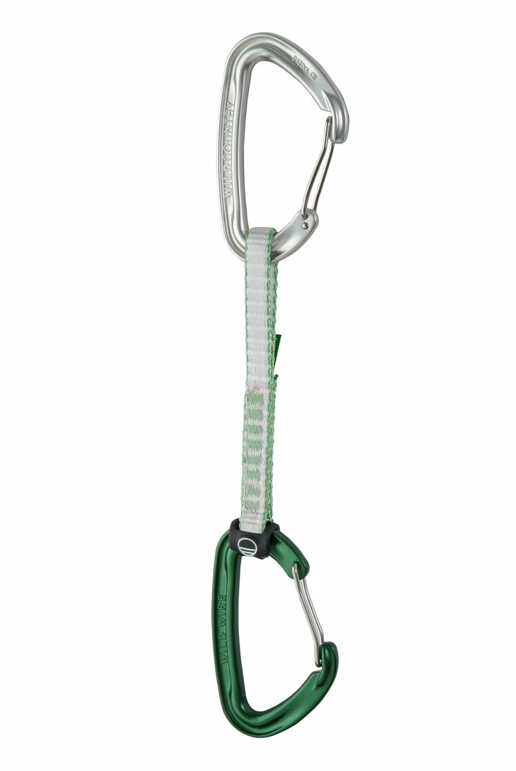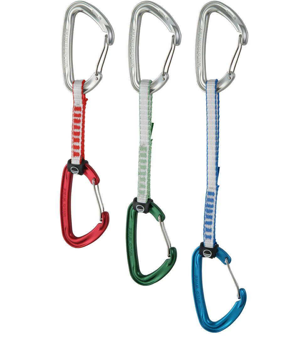 Wildwire quickdraws are available in three lengths, feature our new 12mm dyneema and come in revised colours that identify each length. Easy to spot when racked and easier to rack. In three lengths: 10cm, 15cm and 20cm. Five packs of 10cm draws or mixed lengths are also available. Features Hooded nose Hot forged Tech wiregate I beam back 12mm dyneema Vice locator